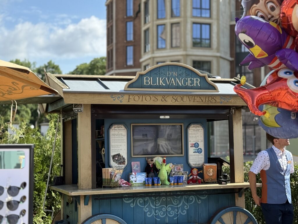 Bij de start of het einde van de dag, zijn er verschillende Efteling souvenirs verkrijgbaar bij D’n Blikvanger. Dit verkooppunt vindt je op het Eiland van de Vijfzintuigen. Van ballonnen tot een digitale fotopas om je herinneringen aan je dag Efteling vast te leggen.